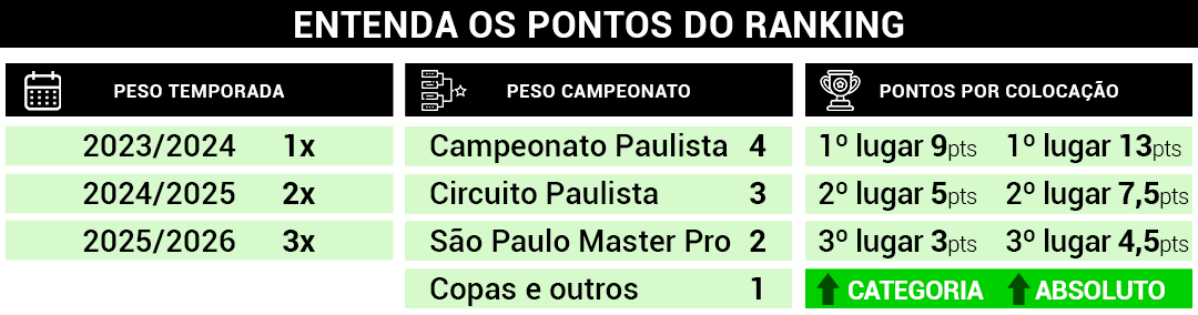 • Temporada 2025/2026 – Contagem dos pontos iniciaram no primeiro dia do Paulista de 2024 e se estenderá até o último dia que antecede o início do Campeonato Paulista de 2025.